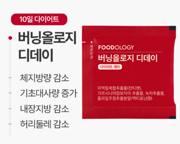 버닝올로지 디데이는 (주)푸드올로지에서 만든 다이어트 건강 기능 식품입니다. 이 제품은 체지방 감량, 기초대사량 증가, 내장지방감소를 목표로 만들어진 제품이며, 기존의 다이어트 성분을 적절히 배합하여 시크릿 레시피로 특별한 효과를 발휘한다고 알려져 있습니다.