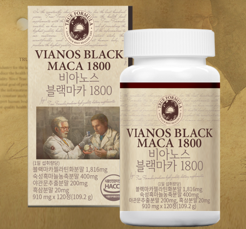 비아노스 블랙마카는 트루포뮬러에서 출시한 건강기능식품 일반식품으로, 주로 남성의 체력관리와 부족한 기력을 채우기 위해 개발된 제품입니다. 블랙마카는 페루의 안데스 산맥에서 자생하는 식물로, 예로부터 스테미너를 채우기 위한 원료로서 이용되었으며 비아노스 블랙마카는 이러한 블랙마카가 1816mg 함유하고 있어 효능을 최대한 끌어올린 프리미엄 제품입니다.