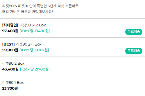 위의 내용은 리셋 80의 공식홈페이지 (https://reset80.co.kr/) 의 내용입니다. 현재 리셋80 -> 90으로 업그레이드되면서 할인 프로모션이 진행 중입니다. 여러 곳의 가격을 비교해 보신 후 구매하시는 것을 추천드립니다.